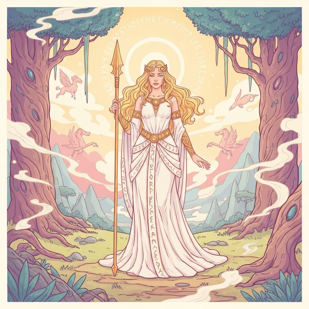 Freya era conhecida por sua beleza radiante e poder de transformação. Ela representava a força feminina em sua forma mais pura - ao mesmo tempo delicada e poderosa.
