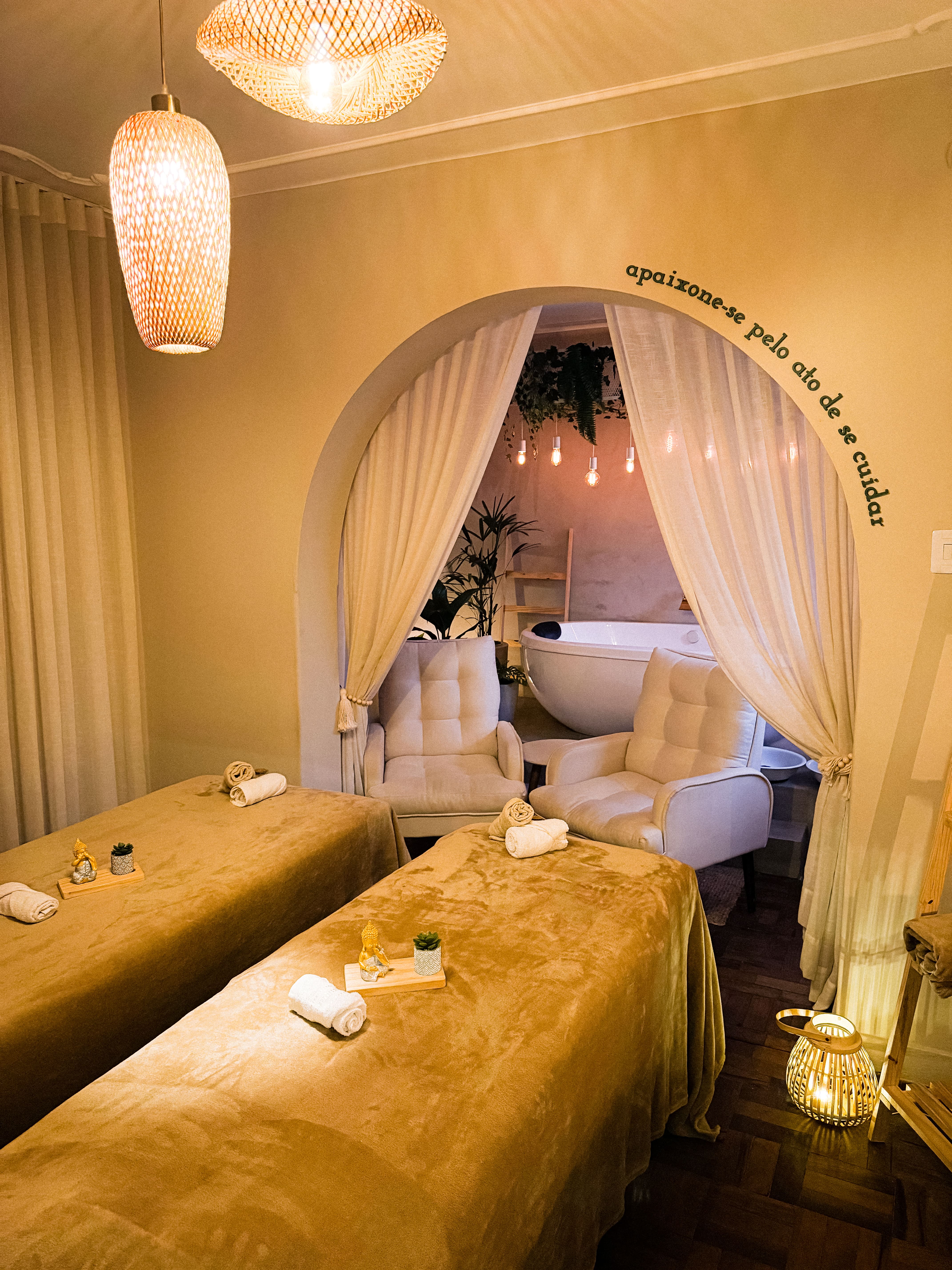 Escalda-pés • Reflexologia • Esfoliação corporal • Banho de imersão • Drenolifting facial e drenagem linfática corporal • Lanche personalizado